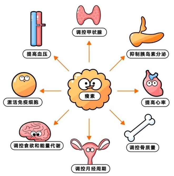 二、脂肪細(xì)胞對胰島細(xì)胞的調(diào)節(jié)作用 現(xiàn)認(rèn)為脂肪組織是內(nèi)分泌器官,可分泌多種脂肪細(xì)胞因子如游離脂肪酸、腫瘤壞死因子、瘦素、抵抗素、脂聯(lián)素等,這些因子在調(diào)節(jié)能量代謝平衡方面發(fā)揮重要作用。 1、瘦素(leptin)--其主要功能是對能量平衡及體重進(jìn)行調(diào)節(jié)。瘦素主要由白色脂肪組織分泌,而胃黏膜、骨骼肌、乳腺、胎盤、骨髓、垂體等處也能分泌一定量的瘦素。 瘦素會給大腦(下丘腦部位)發(fā)信號,提示大腦,能量足夠了,不需要再吃了。 所以說,瘦素是一種讓你“吃飽就?!钡募に?.. 而研究發(fā)現(xiàn),在人體中,胰島素抵抗總是與高瘦素水平相關(guān)——無論體重大小。 另外還有研究發(fā)現(xiàn),瘦素還能獨立于胰島素降低血糖——瘦素水平低會導(dǎo)致胰高血糖素含量升高,久而久之,糖尿病便會接踵而至。